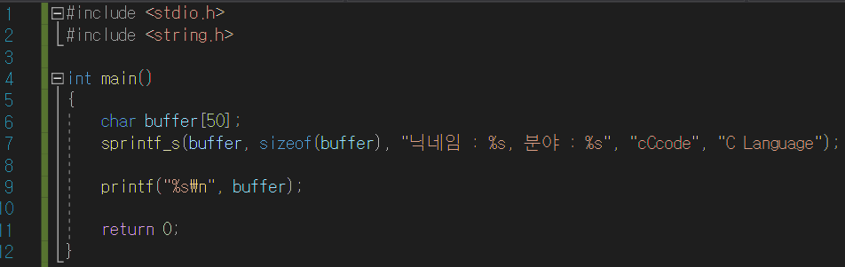 일단, 첫 번째 줄만 보시고도 sprintf 함수 역시 보안 상의 문제로 sprintf_s 함수가 존재한다는 걸 아시겠죠? 제가 코드에 #define _CRT_SECURE_NO_WARNINGS 처럼 정의한다면 그 코드에서 사용하는 함수는 보안상 문제가 있고 그 함수의 원형을 보여드리기 위해 사용한다고 보시면 됩니다.