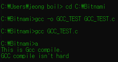 이처럼 gcc를 이용해 결과를 출력해봤습니다. 해당 window cmd 명령어들은 나중에 따로 정리해서 올릴테니, 지금으로서는 그저 따라 치시기만 하시면 됩니다.