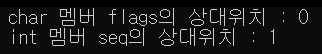 구조체를 1byte 단위로 정렬했으므로 seq의 상대위치는 1이 나옵니다.