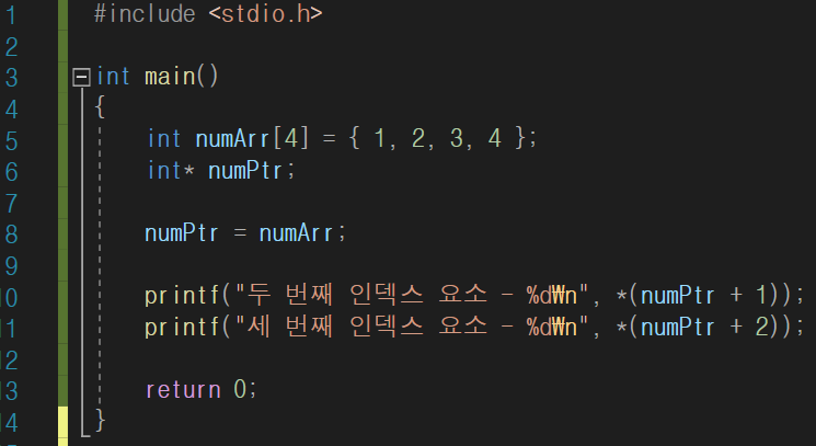 이 사실을 응용하면 배열의 메모리 주소를 포인터 +1 연산하면 다음 인덱스의 요소에 접근(역참조)할 수 있다는 점을 알아내실 수 있습니다.