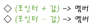 이외에도 구조체 포인터 또한 포인터 연산이 가능합니다. 구조체 포인터는 포인터 연산 한 부분을 괄호로 묶어준 뒤 ->(화살표 연산자)를 사용해 멤버에 접근하면 됩니다.