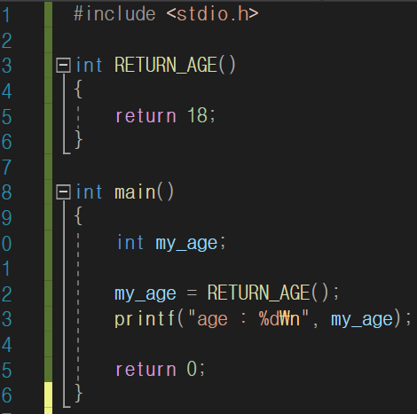 main 함수에서 PRINT_HELLO 함수를 사용할 때는 함수의 이름과 괄호를 사용해 전달값을 적어주고(없다면 아무것도 적지 않습니다.) 세미콜론을 붙이면 함수를 사용할 수 있습니다. 이처럼 함수를 사용하는 방법을 함수를 호출(call)한다고 합니다.
