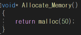 어차피 우리는 메모리를 해제할 때 해당 공간(동적할당 된)을 반환 받은 변수명으로 해제하지 함수에서 할당한 변수 명으로 해제하지 않기 때문에 이처럼 굳이 변수를 선언해줄 필요는 없습니다.