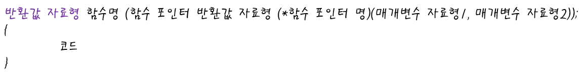 함수 포인터를 매개변수로 사용하고 싶다면 함수의 매개변수 부분에 함수 포인터를 넣은 뒤 정의하면 됩니다.