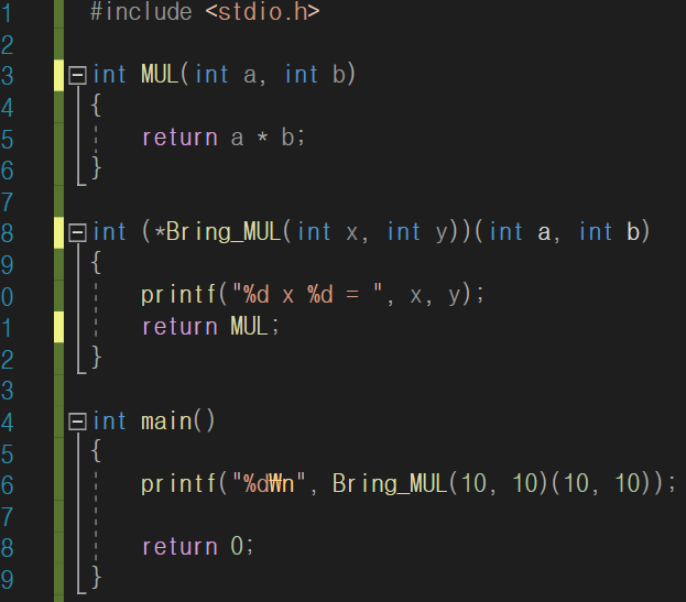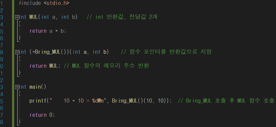 + Bring_MUL은 *(Asterisk)가 있지만 함수 포인터가 아닌 함수입니다.