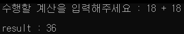 case '+': printf("\nresult : %d\n", Fp[0](num, num_2)); break;