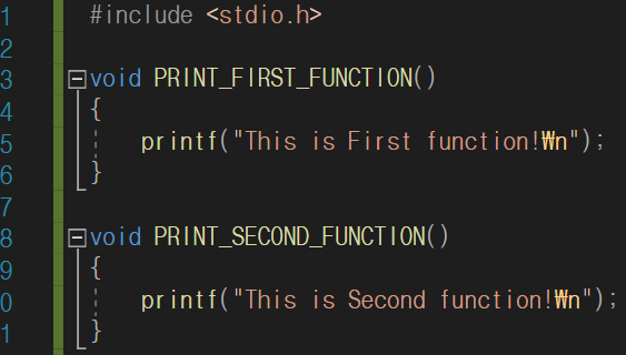 이제 함수 포인터를 구조체 멤버로 사용해보겠습니다. 함수 포인터를 구조체 멤버로 사용하려면 구조체를 정의할 때 멤버로 지정해주면 되요.
