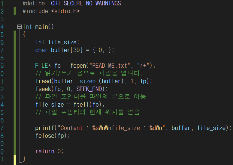 지금까지 파일을 사용할 때는 파일 크기를 이미 알고 있었기에 버퍼 크기를 파일 크기보다 크게 작성하는 게 가능했습니다. 하지만 실제로 파일 크기를 가정하고 코드를 작성할 수는 없습니다.