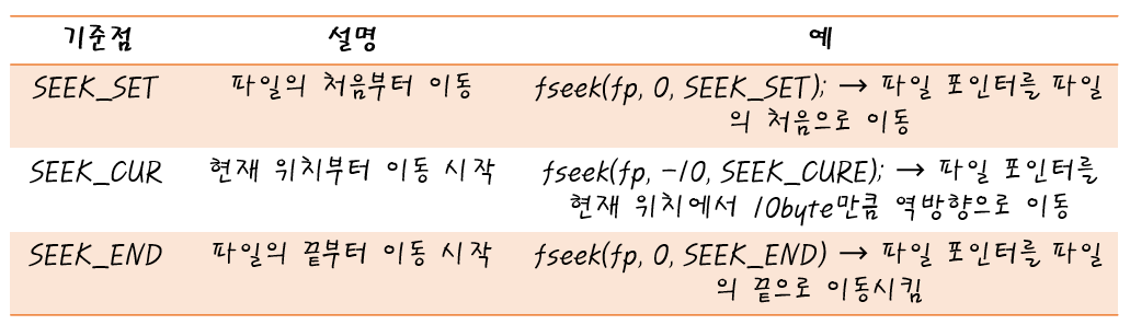 간단히 말해 SEEK_SET은 파일의 처음, SEEK_END는 파일의 끝, SEEK_CUR는 파일 포인터의 현재 위치를 의미합니다.