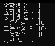 그래서 case에서 break를 생략하면 break가 나올 때까지 반복한다는 점을 이용해서 여러 가지 case에 같은 값을 출력할 수 있습니다.
