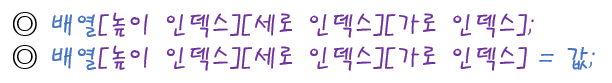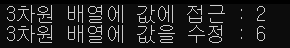 3차원 배열에 접근하려면 [ ]를 세번 사용하여 높이, 세로, 가로 인덱스를 지정해주면 됩니다.