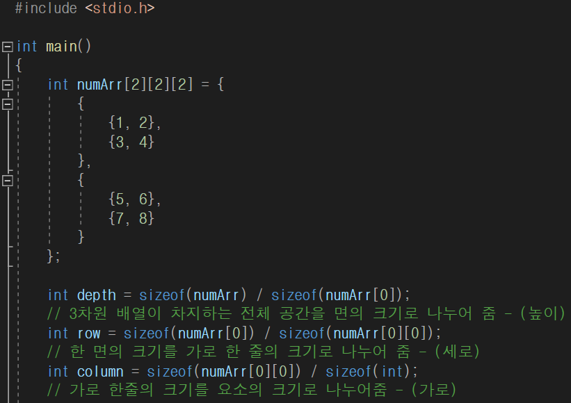 이처럼 간단한 코드를 통해 각각의 인덱스가 numArr[높이][세로][가로]를 의미한다는 걸 확인할 수 있습니다.