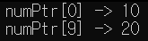 *numPtr처럼 포인터를 역참조한 것은 numPtr[0]처럼 인덱스로 접근하는 것과 같은 값을 가져옵니다. 그리고 numPtr[1]과 *(numPtr + 1)도 같은 값을 가져오는 데 *(numPtr + 1)와 같이 포인터에 값을 더하는 방식을 포인터 연산이라고 합니다. 제 생각에 numPtr[1]이 *(numPtr + 1)과 같은 값을 가져오는 이유는 numPtr 포인터를 역참조하면 배열의 세로 첫 번째 주소값 즉, 배열이 시작하는 주소([0]번째 인덱스 값의 주소)가 나옵니다. 그래서 인덱스 값이 1인 포인터를 구하려면 해당 인덱스 0에서 1을 더해야 하기 때문에 그렇다고 생각합니다. (이 포인터 연산은 나중에 다시 다루도록 하겠습니다.)