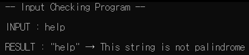 else printf("\nRESULT : \"%s\" → This string is palindrome\n", word);