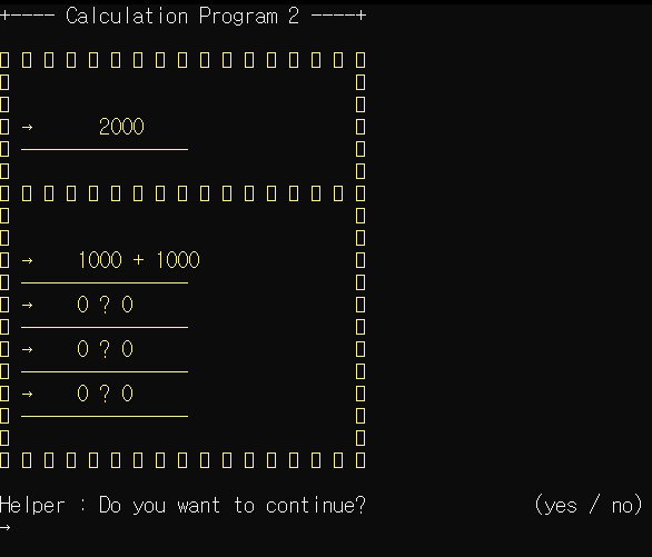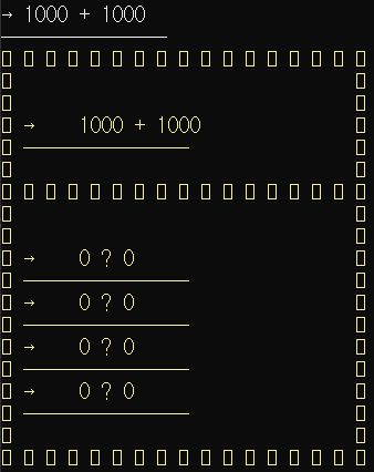 보시면 아시다시피 본식이 적혀있던 위치에는 산술연산의 결과가 그리고 그 아래 0 ? 0 으로 적혀있던 위치에는 산술 연산 본식이 위치하게 됩니다. 저 부분은 일종의 로그처럼 어떤 산술 연산을 수행했는지 기록하는 역할을 하기 위해 만들었습니다.