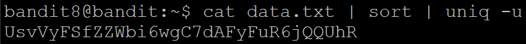 [The password for the next level is stored in the file data.txt and is the only line of text that occurs only once]