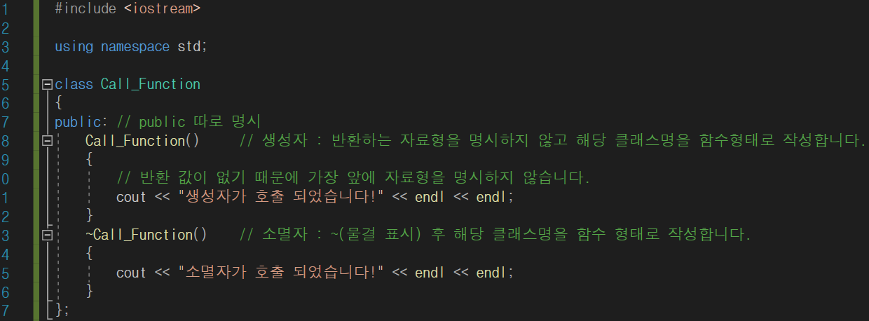 본론으로 돌아와서 생성자와 소멸자를 사용해보겠습니다.