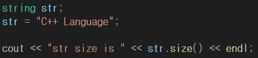 string의 길이를 반환합니다. 사실 문자의 크기가 1byte 라서 크기나 길이의 값은 동일합니다.